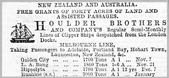 Här blev hon systerfartyg med Hippolyta som man kan se av nedanstående annons införd den 4 november 1865 i den engelska tidningen Bee-Hive: