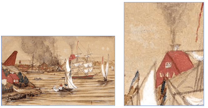 Min analys av motivet på en miniatyrakvarell från 1851 som jag en gång ärvde, resulterade i att fokus kom att hamna på ön Beckholmen, inne i Stockholms inre skärgård. I tavlans mitt (se nedan till vänster) ses en rödtimrad tvåvåningsbyggnad, ur vars skorsten en rejäl rökplym bolmar rakt upp i skyn (se förstoring till höger). Klädseln på besättningen ombord på den lilla segelskutan i mitten antyder sommarhalvår. Därför är det säkerligen inte i uppvärmningssyfte som en brasa har tänts i huset. Vad som utspelar sig där synes vara ett mysterium, varför en djupare fortsatt forskning krävs.